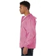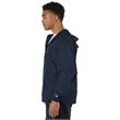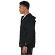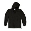 2.8 oz., 100% polyester micro poplin; Wind- and water-resistant;Scuba collar hood; Adjustable bungie drawcord at hood and bottom hem; Exposed dyed-to-match nylon cord zipper; Lower front on-seam pockets; Set-in sleeves; Encased elastic cuffs; Champion "C" patch on left sleeve; Woven neck label; ''A'' list status from CDP (Carbon Disclosure Project); Energy Star Partner of the Year (12 consecutive years); Every piece of Champion apparel purchased from our company qualifies for Hanes4Education;