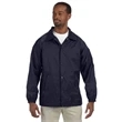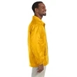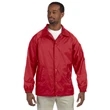 100% nylon taffeta; Water-resistant; Soft Heather Grey jersey lining (Sunray Yellow lined in White); Wind- and water-resistant;Raglan sleeves with full elastic openings; Front welt pockets; Snap center front opening; Open-bottom hem finish; InconspicuZip™ for easy embroidery access;