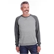 7.2 oz.; 66/34 polyester/ring-spun cotton pre-shrunk french terry; Made with sustainably sourced USA grown cotton;Soft, lightweight ring-spun snow heather french terry fabric for a vintage, lived-in feel; Crewneck with raglan sleeves; Tear away label; 1x1 rib collar with two-needle topstitch; V-notch detailing; Natural back neck tape on all colors; Two-needle coverstitching on raglan sleeves and band bottom; Spandex in collar, waistband and cuffs; due to the unique yarn process, color variation may occur between body and trim fabric; quarter turned to eliminate center crease; Jerzees styles are manufactured using sustainable protocols which are measured and reported annually by Fruit of the Loom, Inc.; Jerzees styles are manufactured with the commitment to enriching lives for people and...