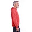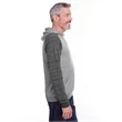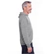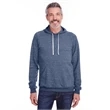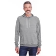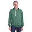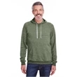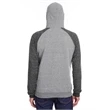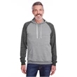 7.2 oz.; 66/34 polyester/ring-spun cotton pre-shrunk french terry; Made with sustainably sourced USA grown cotton;Soft, lightweight ring-spun snow heather french terry fabric for a vintage, lived-in feel; Pullover hood with raglan sleeves; Tear away label; V-notch detailing; Gunmetal grommets; Natural back neck tape on all colors; Natural flat woven drawcord; Two-needle coverstitching along hood, raglan sleeves, pocket opening and band bottom; spandex in waistband and cuffs; Due to the unique yarn process, color variation may occur between body and trim fabric; Jerzees styles are manufactured using sustainable protocols which are measured and reported annually by Fruit of the Loom, Inc.; Jerzees styles are manufactured with the commitment to enriching lives for people and communities wh...