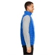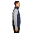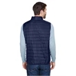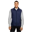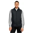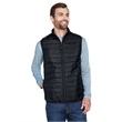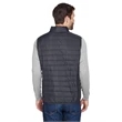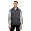 Ash City Men's Prevail Packable Puffer Vest body: 1.2 oz. / 39 gsm 100% polyester with water resistant finish; lining: 100% polyester; insulation: 80 gsm thermal poly fil; center front zipper with autolock slider and reflective toggle; lower pockets with invisible zippers; stretch binding at armholes and hem; packable style into separate storage pouch;