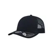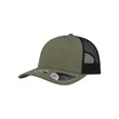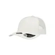 ATLANTIS RECY THREE - SUSTAINABLE TRUCKER CAP ; Sizes O/S ; 12 dozen/case ; 50% Recycled Cotton/50% Conventional Cotton Front ; 100% Recycled Polyester Mesh Back ; Structured, Recycled Buckram, Six-panel, Mid-profile ; Mid-visor (Slightly Curved) ; Retraze Recycled Visor (starting with 2024 production) ; Self-fabric Sweatband ; Recycled PE Adjustable Snapback Closure ; Product traceability via QR code