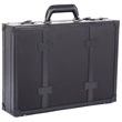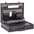 Attache Case. Made of 1680D polyester with vegan trim. Plaid polyester lining. Multi-use built-in organizer pockets. Detachable padded laptop section - fits most 17.3". Detachable cable pouch. Pen loops. Reinforced handle. Dual combination locks.