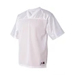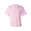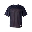 Longing to be on the football field? Sold blank, the Stadium Replica Jersey can easily make dreams come true! Available in several team colors, it's made of 100% polyester tricot mesh. Featuring dazzle fabric yoke and sleeves, it is soft and durable. It also features 1" x 1" rib-knit modified V-neck collar, set-in sleeves, double-needle stitched sleeves/bottom and an outside locker label. Available in sizes S-3XL. Not to be worn with pads! Blank product.