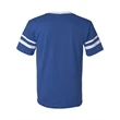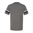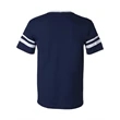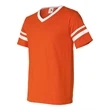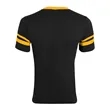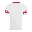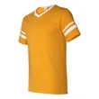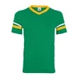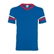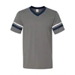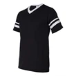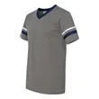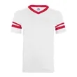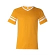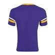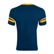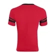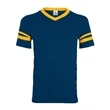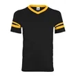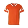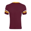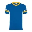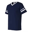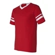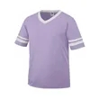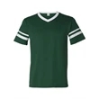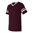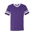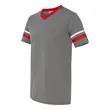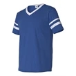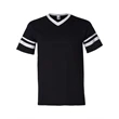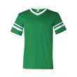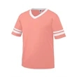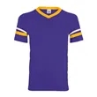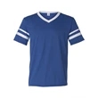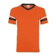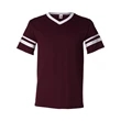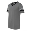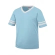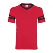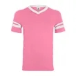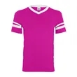 They're bound to hit a grand slam in this retro-looking V-neck jersey from Augusta Sportswear®! Featuring striped sleeves and constructed of 50/50 cotton/polyester knit, this jersey is tailored to last season after season. Has a contrast color 1" x 1" rib-knit V-neck collar, two white stripes on set-in double needle stitched sleeves and double-needle stitched bottom hem. Available in a variety of colors and sizes. Sold as a blank product only.