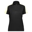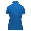 Augusta Sportswear Women's Two-Tone Vital Polo ul)4 oz./yd2, 100% polyester smooth knit with color secure® technology that helps prevent dye migration. Moisture wicking and odor resistant. Self-collar. Three-button box-stitched placket. Set-in sleeves. Side vents. Tear away label.