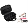 Discover the perfect gift to keep them safe day in and day out while on the road. This auto safety kit is packed inside a black EVA zippered hard side storage case that measures 7.5" x 6" x 3.5" and features a rescue tool knife with glass breaker and seat belt cutter, a digital tire pressure gauge for optimal tire inflation safety, a roadside LED flashlight with red warning strobe and magnetic bottom. This product is sold unimprinted.
