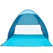 It is constructed with a steel beam frame and flame retardant, 190T polyester. Silver coated fabric to ensure that the coverage area of Anti-UV effects. The body features a large mesh window and an open-access design for maximum ventilation and comfort. The tent automatically pops up and includes side panel pockets for sand to add weight and 6 metal ground stakes. This lightweight tent includes a convenient carrying bag with shoulder straps. Enjoy a comfortable, sunny day at the beach! 65" L x 59" W