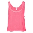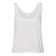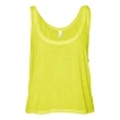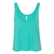 A comfortable and softly-draping tank in 10 flattering colors. The Women's Bella + Canvas Flowy boxy tank is constructed from a 3.7 oz., polyester and viscose blend plus 30 singles so it is as comfortable as it is durable. Side-seamed, the top is sure to flatter and become a fashion staple in any wardrobe. Featuring a cropped body, this shirt is great solo or layered over a tighter fitting tank top. Sold as a blank product.
