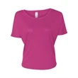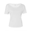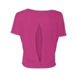 Feel the wind while you race around in this airy cutout tee with short sleeves and open back that allows for easy screen printing. Sold blank, the Bella + Canvas women's flowy cutout tee is the ideal garment for any stylish lady in the summer time. This product can be worn solo with shorts or jeans or layered for a unique look that is sure to get you noticed. Get comfy in this top that is sure to become a wardrobe staple.