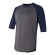 Hit a homerun by handing out this B-Core Three-Quarter Sleeve Baseball T-Shirt! This 100% polyester tee features moisture management and antimicrobial performance properties, contrast three-quarter length raglan sleeves, contrast self-fabric collar, double-needle stitched shirttail hem with tack, and a Badger heat seal logo on the left sleeve. In a variety of color combinations and sizes, this shirt will be the right fit for your team. From clubs to charity events and more, choose this unimprinted baseball top today!