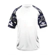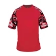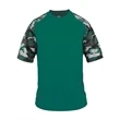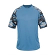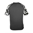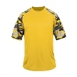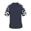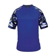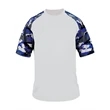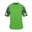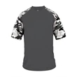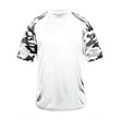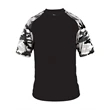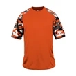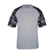 Add some interest to a plain shirt by wearing this Camo Sport T-Shirt! The 100% polyester t-shirt is made from a moisture management/ antimicrobial performance fabric and features sublimated camouflage shoulder panels and sleeves, self-fabric collar, double-needle hem, and a Badger heat seal logo on the left sleeve. In a wide range of color combinations and sizes, this item is sure to stand out from any crowd! Whether at the gym or around town, clients will love to receive this top at your next event.