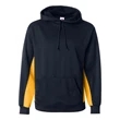 Badger BT5 moisture management hooded sweatshirt. Keep moving without worry in 100% polyester with moisture management and cool waffle weave panels. 100% polyester. Side and underarm waffle weave panels. Badger sport paneled shoulders for maximum movement. Spandex reinforced polyester rib cuffs and waistband. Embroidered badger logo on the left sleeve. Blank product. Blank product.