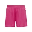 Keep pace with all your promotional efforts with these B-Core Women's 5" Inseam Shorts! These 100% polyester shorts are made with moisture management/ antimicrobial performance fabric and features a 5" inseam, double-needle hem, 1.5" covered elastic and draw cord, and a Badger heat seal logo on the left hip. In a variety of colors and sizes, all the ladies on your team will love to receive these shorts at fundraising events, tradeshows, and much more! Sold blank.