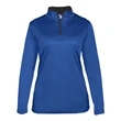 Improve your performance with this B-Core Ladies 1/4 Zip! This 100% polyester moisture management/antimicrobial fabric pullover features a contrasting self-fabric inner collar with 7" locking zipper, sport paneled shoulder for maximum movement with cover stitch, thumb holes in sleeves-open bottom, and a Badger heat sealed logo on the left sleeve. Available in a variety of colors and sizes, this blank shirt is a great giveaway item at tradeshows, gym openings, tournaments, and much more!