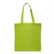 Carry your stuff effortlessly in this eco-friendly basic tote. This sleek open bag made of 80 GSM non-woven polypropylene material sports interior seams. With its 22" reinforced handles, it can carry up to 11 lbs.