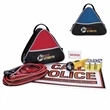 Be ready for all kinds of roadside emergencies when you keep this important safety kit in your trunk or glove compartment. The Be Prepared kit includes a pair of thermoplastic rubber jumper cables, a flashlight and a "CALL POLICE" windshield flag in a 9 7/8" x 13" x 2" polyester zippered case. Also included is a First Aid packet with an adhesive pad, antacid packet, antiseptic towelettes, bandage and cream packets. Choose from red or blue and add your school, sports team, organizational or company logo or message to customize.