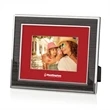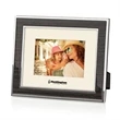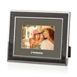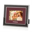 Bright silver metal trim surrounds a molded tiger-wood engineered Lucite center to create a highly polished, sophisticated frame that is welcome in any style room.