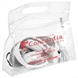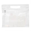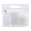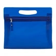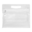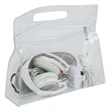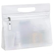 Bermuda Vinyl Travel Pouch with Zipper. Semi-Transparent rigid Vinyl Travel Vanity and Accessories Pouch with zipper closure and roomy carrying handle. Perfect for portable electronics, business accessories, personal amenities, cosmetics and TSA approved travel accessories. Overseas.