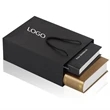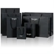 This bag is made of black paper laminating, appropriate clothing, bags, jewelry, cosmetics and other products packaging, the appearance of the whole black and hot stamping or hot silver printing process, makes the bag look more high-end, support custom any size any design, at the same time we also have kraft paper and coated paper bags made of white card for you to choose from, the rope bag can also be customized (you see now is 12 x16 x4 "effect of the price of black paper).You can print your trademark on it to enhance your brand reputation!