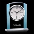 Broadland Clock - Clear/Blue 6 1/4". Stunning Clock with Chrome Clock Face. Beautiful Blue Accents.