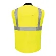 Bulwark Hi Vis Insulated Vest with Reflective Trim - CoolTouch®2 ul)Shell: Flame-resistant, 7 oz./yd2 (235 g/m2), 48% Modacrylic/ 37% Lyocell/ 15% Aramid, Water-repellent. Lining: 100% Cotton. Insulation Package: 12 oz./yd2 (405 g/m2), 100% Modacrylic. 360degree visibility with front and back 2" silver reflective striping. DWR Durable Water Repellent finish. Separating, Nomex® taped zipper. Rib knit collar. Two large inset slash welted pockets, Napoleon chest pocket with zipper closure. One inside chest pocket. Lanyard access back. Mic loop for gas monitor. Home Wash. CAT 4 Arc Rating ATPV 45 calories/cm2ANSI 107-2010 Class 2 Level 2 CompliantANSI 107-2015 Type R Class 2 Compliant