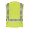 Bulwark Hi-Visibility Flame-Resistant Safety Vest ul)Flame-Resistant, 7 oz./yd2 (235 g/m2), 48% Modacrylic / 37% Lyocell / 15% Aramid. Parallel striping, front and back. 360degree visibility. Applied 2" FR silver reflective striping. Hook-and-loop front closure. Hook-and-loop adjustable sides (dual sizing). Bulwark reseller hang tag. Industrial Laundry - Light Soil, Home Wash. CAT 2 ANSI 2 Arc Rating ATPV 9.0 calories/cm2 ANSI 107-2010 Class 2 Level 2 CompliantANSI 107-2015 Type R Class 2 Compliant