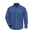 Bulwark Snap-Front Uniform Shirt - Nomex® IIIA - 6 oz. - Tall Sizes ul)Flame-resistant, 6 oz./yd2 (205 g/m2), Nomex® IIIA (93% Nomex® Aramid/ 5% Kevlar® Aramid/ 2% Other Fiber). Banded, topstitched collar. Two chest pockets with snap flap closures and sewn-in pencil stall. Placket front with snap closure. Topstitched cuff with adjustable snap closure. Tailored sleeve placket. Industrial Laundry - Light Soil, Home Wash. NFPA® 2112 Compliant CAT 1 Arc Rating ATPV 5.6 calories/cm2Regular sizes available under style SNS6