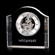 Burchfield Clock - Optical 6". Thick Optical Crystal Clock with curved top. Classic mechanical clock face. A gift sure to impress.