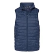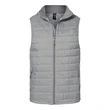 Burnside Elemental Puffer Vest ul)4 oz./yd2, 100% nylon. Mini brick quilting. Zipper cover at chin and pockets. Inside zippered left chest pocket. External zippered pockets. Two adjustable toggle pulls on bottom hem.