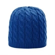 Combo features a cable knit beanie cap decorated with a 2" x 3" or 2 1/2" overall applique and a pair of knit text gloves decorated with a 1 1/4" x 1 1/4" applique on each glove cuff using the same design on all pieces. Text gloves have 3 finger activation. Stay comfy and warm with this set.