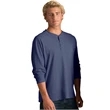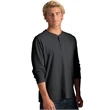 Rich in tradition, the Henley has long been a go-to staple for uniforms, outdoor apparel and casual sportswear. Our modern twist involves a subtle slub-jersey texture. 80% cotton/20% polyester, 4 3/4 oz., three-button placket, forward shoulder, hemmed long sleeves, tagless label. S-5XL.