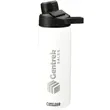 Your beverage stays perfectly hot or cold no matter where your day takes you with the Chute® Mag. This bottle is double wall 18/8 grade stainless steel with copper vacuum insulation for ultimate conductivity to keep drinks hot for 8 hours and cold for 24 hours. On-trend, durable powder coating. The comfortable magnetic carry handle keeps cap stowed while drinking. Provides an ergonomic drink interface that delivers a high flow of water without sloshing or spilling. Wide mouth opening for easy cleaning and filling. Recommended to hand wash only. Leed's Exclusive. 20oz.