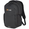 The CamelBak DEN 15" Laptop Backpack is made from coated RPET polyester. A front zippered pocket offers organization and extra storage for quick access. The main compartment includes a 15' padded laptop sleeve. There are two side pockets for water bottles or extra gear. Trolley strap attaches to your luggage or use the padded, adjustable shoulder pads to carry this bag.