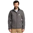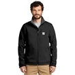 Carhartt Crowley Soft Shell Jacket. The closest thing to wearing an armadillo, this heavyweight soft shell keeps the elements at bay while keeping you warm and dry. 13.9-ounce, 90/10 nylon/spandex shell bonded to a water-resistant film insert and a 100% polyester fleece backing Rain Defender durable water repellent Wind Fighter technology tames wind Rugged Flex technology for ease of movement Reverse coil center-front zipper with chin guard Zip-through cadet collar Left chest pocket with reverse coil zipper Zippered hand pockets Interior pockets: large document pocket with hook and loop closure and two open pockets Hook and loop adjustable cuffs Adjustable drawcord drop tail hem Carhartt-strong, triple-stitched main seams Carhartt label sewn on chest pocket Relaxed fit