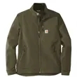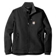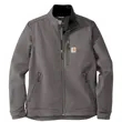 The closest thing to wearing an armadillo, this heavyweight soft shell keeps the elements at bay while keeping you warm and dry.. 13.9-ounce, 90/10 nylon/spandex shell bonded to a water-resistant film insert and a 100% polyester fleece backing. Rain Defender durable water repellent. Wind Fighter technology tames wind. Rugged Flex technology for ease of movement. Reverse coil center-front zipper with chin guard. Zip-through cadet collar. Left chest pocket with reverse coil zipper. Zippered hand pockets. Interior pockets: large document pocket with hook and loop closure and two open pockets. Hook and loop adjustable cuffs. Adjustable drawcord drop tail hem. Carhartt-strong, triple-stitched main seams. Carhartt label sewn on chest pocket. Relaxed fit