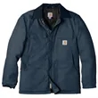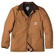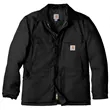Gear up for the cold with Carhartt's Duck Traditional Coat featuring a quilted nylon lining with arctic-weight polyester insulation.. 12-ounce, firm hand, 100% ring spun cotton duck canvas. Wind Fighter technology tames wind. Quilted nylon lining with arctic-weight polyester insulation. Corduroy-trimmed collar. Snaps to attach optional Firm Duck Hood (CT102368). Two-way brass center-front zipper plus storm flap with hook and loop closure. Two chest pockets with flaps and hook and loop closures. Two interior pockets. Two large lower-front pockets. Articulated elbows. Inner sleeve, rib knit storm cuffs. Split-back construction. Pleated bi-swing back. Carhartt-strong, triple-stitched main seams. Carhartt label sewn on left chest pocket. Loose fit