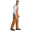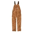 Carhartt Duck Unlined Bib Overalls. This is an update to our best-selling R01 overalls. 12-ounce, firm hand, 100% ring spun cotton duck canvas Adjustable front-elastic suspenders with highly durable clasps Multi-compartment bib pocket with zippered closure Stretch side panels Zipper fly Two lower-front pockets Ruler pocket on left leg Hammer loop on right leg Updated chap-style double-front construction Double-front knee construction with cleanout bottoms to accommodate knee pads Two reinforced back pockets Reinforced 360-degree kick panels around the cuffs Metal rivets at vital stress points Carhartt-strong, triple-stitched main seams Carhartt label sewn on bib pocket Relaxed fit