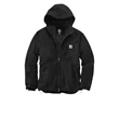 Carhartt Full Swing Cryder Jacket When you're bucking hay or swinging a framing hammer, you need a jacket that gives you freedom to move. 8.25 ounce, 59/39/2 cotton/polyester/spandex Quick Duck canvas 80 gram 3M; Thinsulate, insulation for warmth Rain Defender durable water repellent 30% lighter but ounce-for-ounce as durable as sandstone Rugged Flex durable stretch technology for ease of movement Mighty Back Bi-Swing between shoulders for instant recovery Flex Elbow, for less restriction Freedom Gussets under arms Mock neck collar with zip-through and detachable hood Two-way center front zipper with inner storm flap Two zippered chest pockets Lower hand pockets with hidden snap closures Carhartt-strong, triple-stitched main seams Carhartt label sewn on chest pocket Loose fit