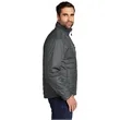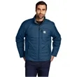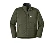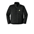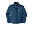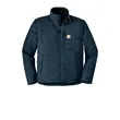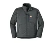 Carhartt Gilliam Jacket. Lightweight, yet warm, this jacket is amazingly durable and dependably water repellent. 1.75-ounce, 100% nylon Cordura shell Rain Defender durable water repellent Wind Fighter technology tames wind Nylon lining quilted to 100-gram, 100% polyester insulation for warmth Reverse coil center front zipper Zip-through collar Left chest map pocket with reverse coil zipper Two hand pockets with hidden snap closures Two interior pockets: one zippered, one hook and loop closure Hook and loop adjustable cuffs Drawcord adjustable drop tail hem Carhartt-strong, triple-stitched main seams Carhartt label sewn on chest pocket Relaxed fit
