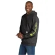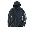 Carhartt Midweight Hooded Logo Sweatshirt Show your Carhartt pride in this versatile, layerable sweatshirt that features a bold Carhartt signature logo down the left sleeve. 10.5-ounce, 50/50 cotton/poly blend or 59/41 cotton/poly blend (Black, Carbon Heather, Carhartt Brown, New Navy)* 70/30 cotton/poly blend (Heather Grey) Attached three-piece hood with drawcord closure Carhartt signature logo down left sleeve Front hand warmer pocket Stretchable, spandex-reinforced, rib knit cuffs and waistband Carhartt-strong, triple-stitched main seams for added durability Carhartt patch sewn on handwarmer pocket Loose fit *Please note: Select colors in Carhartt fleece are currently transitioning from a 50/50 cotton/poly blend to a 59/41 cotton/poly blend. Weight and fabric properties remain the sa...