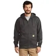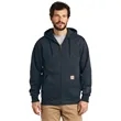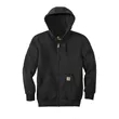 Carhartt Rain Defender Paxton Heavyweight Hooded Zip-Front Sweatshirt. For those days when a heavy jacket is just too much to wear on the job, this durable, water-repellent sweatshirt is the solution. 13-ounce, 75/25 cotton/poly blend or 55/45 cotton/poly blend with Rain Defender durable water-repellent finish (Black, New Navy)* 55/45 cotton/poly blend (Carbon Heather) Attached jersey-lined three-piece hood with drawcord closure Antique-finish brass front zipper Two front hand warmer pockets with hidden security pocket inside Stretchable, spandex-reinforced, rib knit cuffs and waistband Carhartt label sewn on left hand warmer pocket *Please note: Select colors in Carhartt fleece are currently transitioning from a 75/25 cotton/poly blend to a 55/45 cotton/poly blend. Weight and fabric pr...