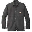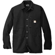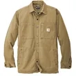 Stay warm while getting the range of motion you need in a shirt jac that's rugged enough for chores like chopping wood or repairing a broken fence post.. 7.8-ounce, 98/2 cotton/spandex stretch canvas. Printed fleece lining. Rugged Flex technology for ease of movement. Spread collar. Metal snaps throughout. Right chest pocket. Left chest pocket with zipper closure. Two large lower-front welt pockets. Two snap-adjustable cuffs with extended plackets. Carhartt label sewn on left chest pocket. Relaxed fit