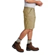 Carhartt Rugged Flex Rigby Cargo Short Lightweight, flexible and built to last, these shorts give you the freedom to move through your work or while doing yardwork on the weekend. 8.5-ounce, 98/2 cotton/spandex canvas Rugged Flex durable stretch technology for ease of movement Sits at the waist Comfortable fit through the seat and thigh with room to move Left-leg cargo pocket with secure cell phone storage Right-leg cargo pocket with utility pocket Stronger sewn-on-seam belt loops Heavy hauling reinforced back pockets Hidden hook and loop closures on cargo and back pocket flaps 11-inch inseam Carhartt label sewn on right rear pocket Relaxed fit
