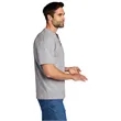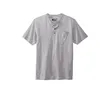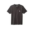 Carhartt Short Sleeve Henley T-Shirt This henley is made of heavyweight cotton jersey and cut generously for a roomy fit. Durable 6.75-ounce, 100% cotton jersey knit 90/10 cotton/polyester jersey knit (Heather Grey) 60/40 cotton/polyester jersey knit (Carbon Heather) Rib knit crewneck Henley collar with three-button front Tagless neck label Left chest pocket Side-seam construction minimizes twisting Carhartt label sewn on left chest pocket Rib knit cuffs Loose fit