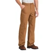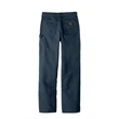 Carhartt Washed-Duck Work Dungaree. Long days on the job site or making repair calls require pants that are comfortable and durable. These pants let you move freely and they're tough as a steel beam. 12-ounce, 100% cotton ring spun washed duck canvas Sits slightly above the waist Generous fit through the seat and thigh with the most room to move Multiple tool and utility pockets Left-leg hammer loop Stronger sewn-on-seam belt loops Heavy hauling reinforced back pockets Straight leg opening fits over boots Carhartt leatherette label sewn on right rear pocket Loose fit