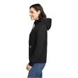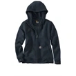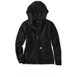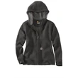 Carhartt Women's Clarksburg Full-Zip Hoodie This hoodie has the soft feel of a favorite sweatshirt with the warmth and durability that rivals a jacket. 10.5-ounce, 55/45 cotton/poly blend Attached three-piece hood with drawcord closure Full-length brass front zipper Two front hand warmer pockets Stretchable, spandex-reinforced, rib knit cuffs and waistband Carhartt label sewn on left hand warmer pocket Relaxed fit