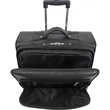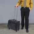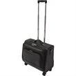 This Carlin Canyon wheeled briefcase/overnight is perfect for the traveling business person! The main compartment has a two-way zipper with an interior clothes holder and quick release buckle. The telescoping handle extends to 23" and the 360-degree spinner wheels allow for effortless maneuvering. The front pockets have multiple slots for a phone, pens and business cards and a snap-out metal key clip. The 15" W x 11" H x 1 1/2" D laptop sleeve has a removable padded zippered case. There's a sturdy handle or padded shoulder strap for carrying. The strap adjusts from 35" to 48" for the perfect fit. The bag comes with quality YKK zippers. The back side has an ID holder as well as two zipper openings for a rear trolley strap that can be attached to other rolling luggage.