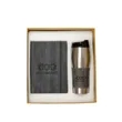 Make holidays and birthday celebrations special with this Casablanca™ Journal & Tumbler Gift Set! The insulated travel cup features stainless steel construction with a black plastic liner and similar sleeve fabrication to that of the book. It holds up to 16 oz. and has a splash-resistant SAN acrylic drink-through lid. The sleeve removes for easy washing. The notebook has a simulated cork texture cover with a natural weathered look, 80 ruled pages, an elastic loop closure, bookmark and document pocket on the inside. Add your debossed logo for a knockout giveaway!