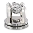 Silver master analog quartz clock is surrounded by rings that whirl and twirl. 1 diameter disk and deluxe gift box are included.